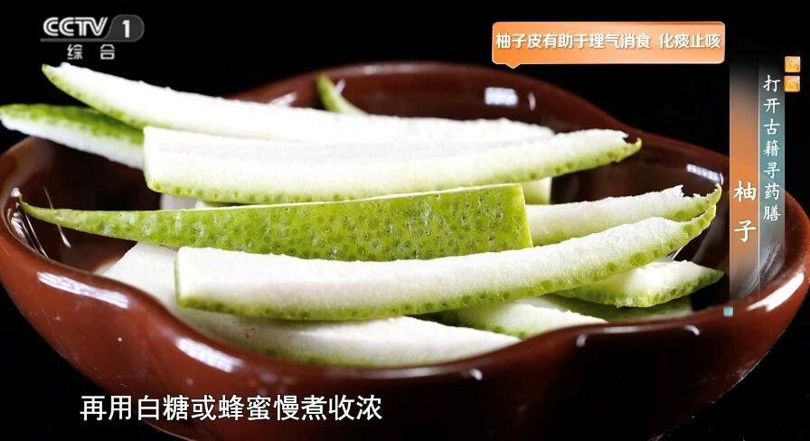 文旦皮内层是白瓤层,将其切条后用盐水浸泡、焯水去涩后再用白糖或蜂蜜慢煮收浓,随机制成蜂蜜柚皮蜜饯,是传统零食,也不错制成茶饮,有助于理气消食、止咳化痰。